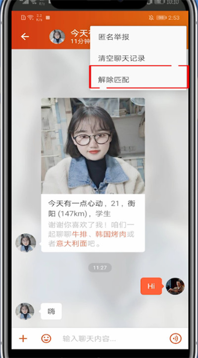 4、点击右上角的解除匹配即可屏蔽