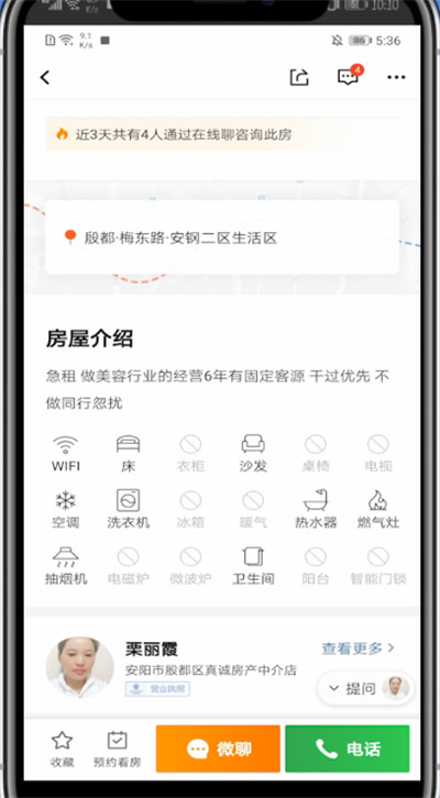 3、找到你喜欢的房源,点击微聊即可联系发布人