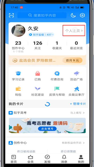 3、点击个人主页