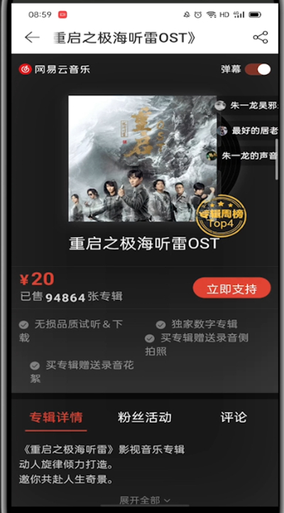 网易云怎么送数字专辑给好友?首先我们打开网易云,在发现页找到数字专辑点击进入,选择你要购买的数字专辑,点击立即支持,购买数量选择两张及以上,购买后即可赠送给好友,下面小编为大家带来方法。