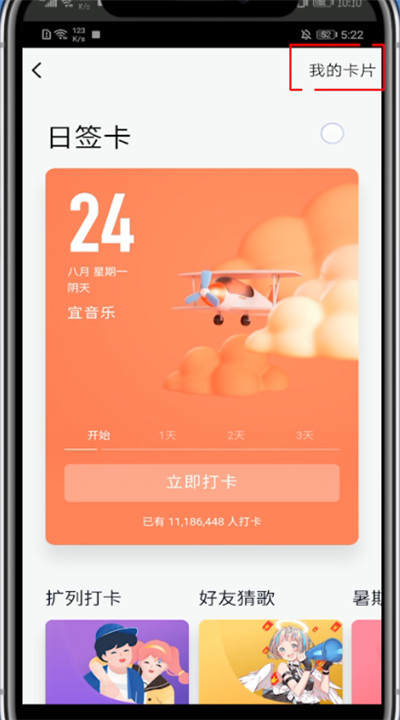 4、进入后点击右上角我的卡片