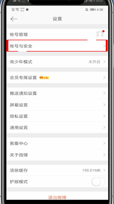 4、点击账号与安全