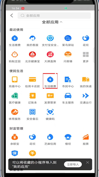 3、点击生活缴费