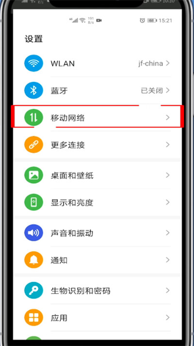 2、点击移动网络