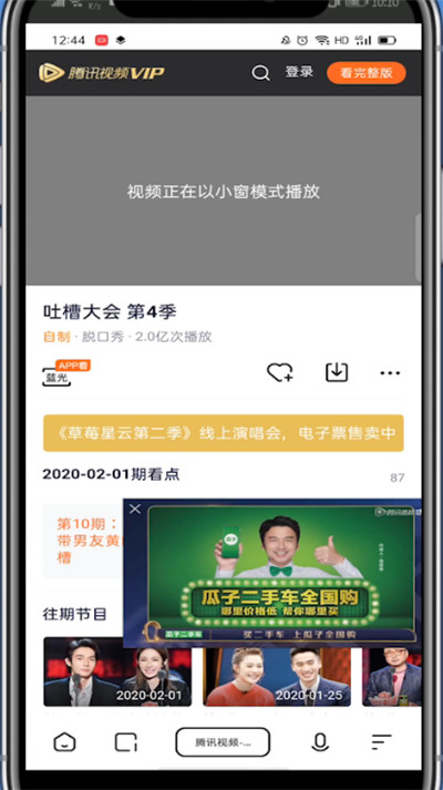3、点击播放后点击小窗口模式,点击播放界面,点击左上角的叉即可关闭