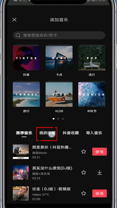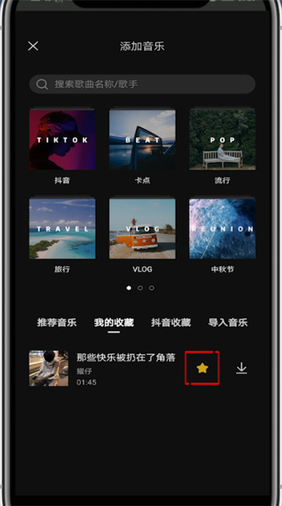 6、找到要删除的音乐点击黄色星星即可删除