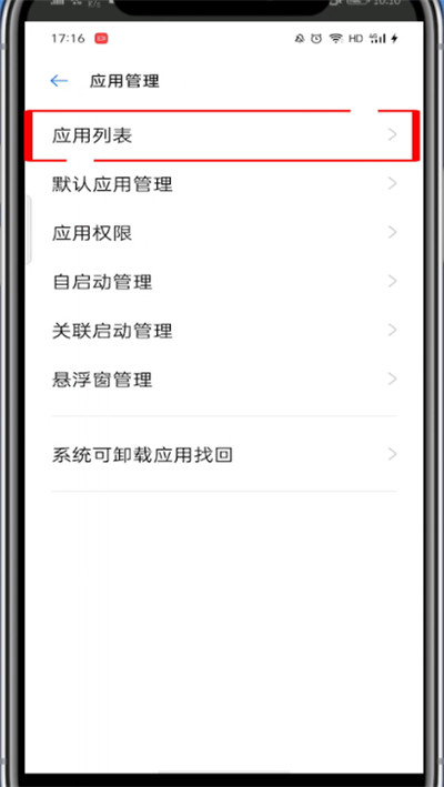 3、点击应用列表