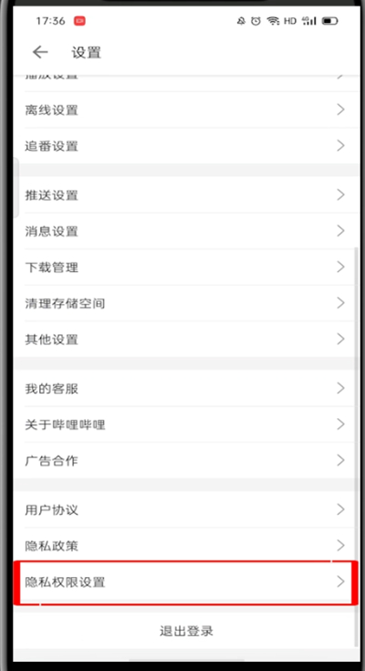 4、点击隐私权限设置