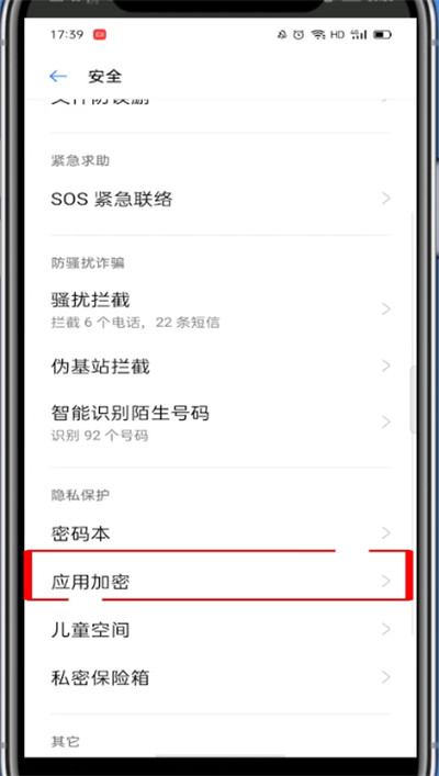 4、输入隐私密码后找到支付宝进入并勾选登录密码保护即可