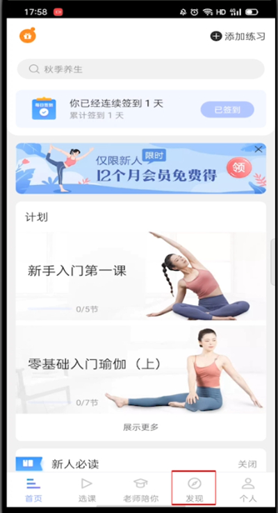 每日瑜伽怎么发帖子?首先打开每日瑜伽,点击发现,找到右下角的发帖图标,成长值达到15分后即可在这里发表帖子,下面小编为大家带来方法。