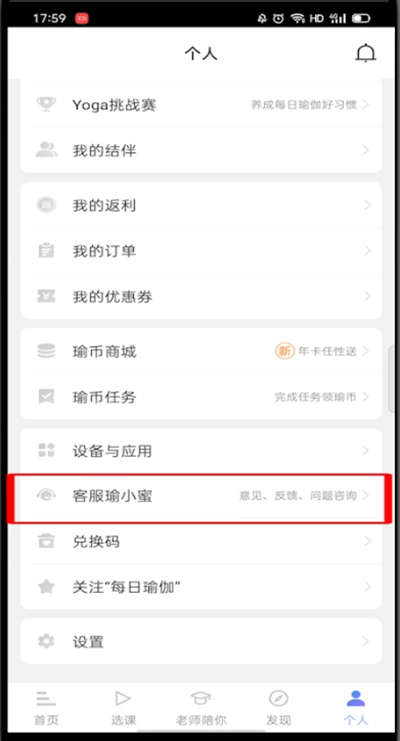 每日瑜伽怎么联系客服?首先打开每日瑜伽,点击右下角的个人,点击客服瑜小蜜,点击在线客服即可联系客服,下面小编为大家带来方法。