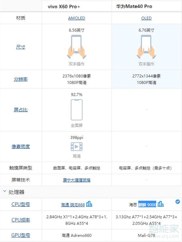 以上就是智能家小编给大家带来的关于“vivox60pro+和华为mate40pro配置对比”的全部内容了,了解更多智能资讯尽在智能家(m.znj.com)!
