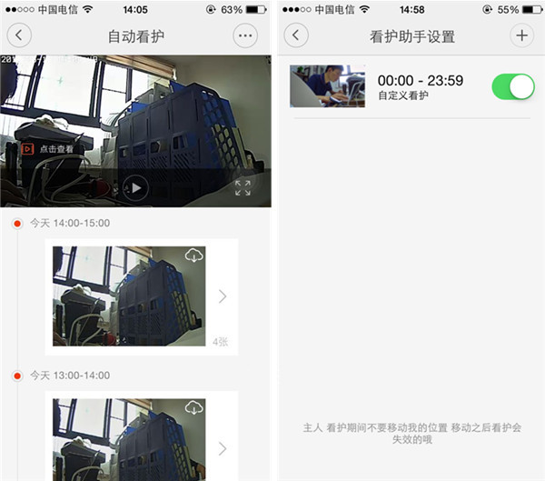 自动看护功能,经过一段时间的使用之后才能发现这确实是一个非常实用的功能,在用户没有过多的时间去监控室内发生的事情的时候这款摄像头能够自动的捕捉,用户还可以根据时间需要设定不同的自动看护时间段。