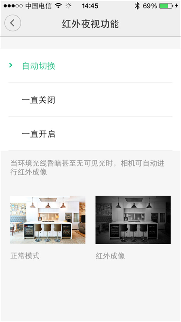 还有一个非常实用的功能就是“红外夜视功能”能够通过这个功能来实现夜间监控,配合高清画质在加上24小时自动看护功能,即使人不在家,我们也能够时时刻刻掌握家中动态,不论家中是否遭遇小偷、熊孩子是否乱翻东西、宠物在家中调皮,不管白天黑夜我们都能一刻不落的尽收眼底。