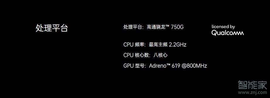 opporeno5k配备了骁龙750G处理器,最高主频 2.2GHz,GPU型号是Adreno™ 619 @800MHz