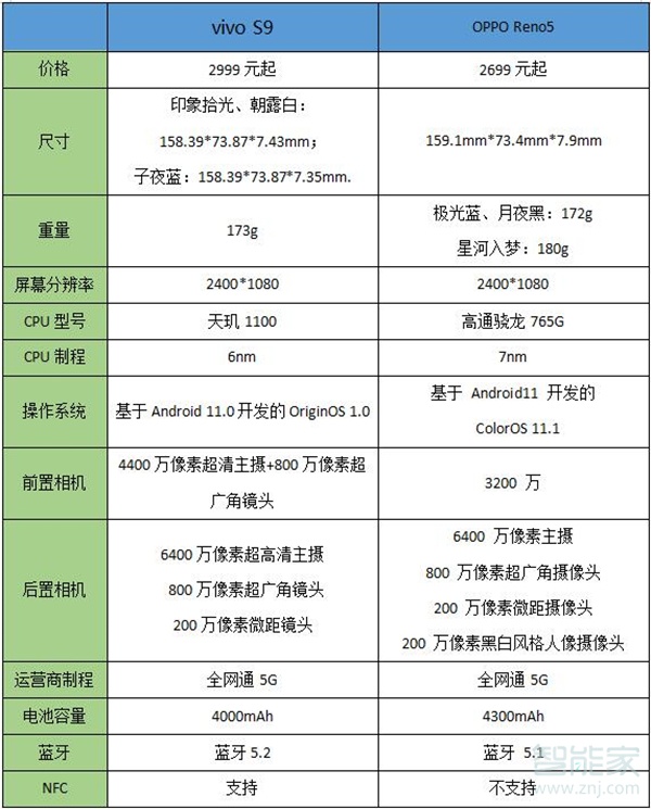 以上就是智能家小编给大家带来的关于“vivos9和opporeno5对比”的全部内容了,了解更多智能资讯尽在智能家(m.znj.com)!