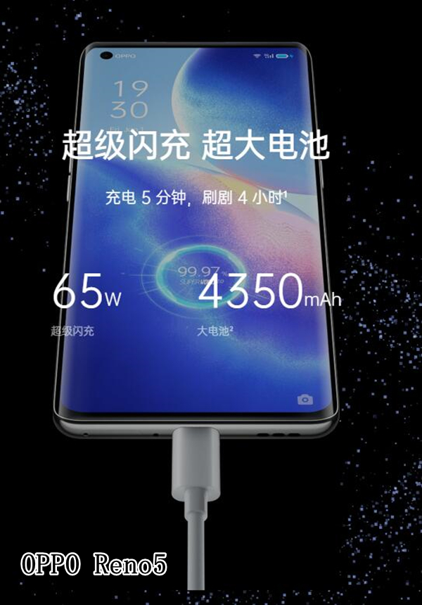 而OPPOReno5配备了更大的4300mAh电池,充电速率也提升到了65W快充。