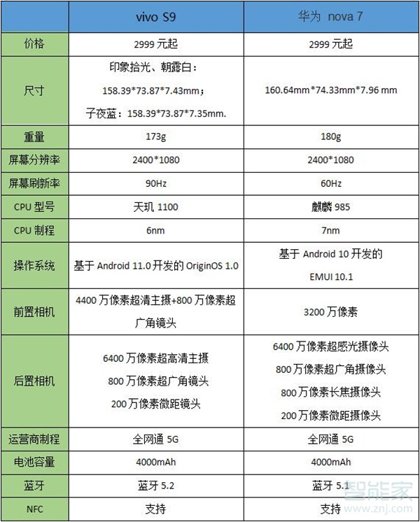 以上就是智能家小编给大家带来的关于“vivos9与华为nova7区别”的全部内容了,了解更多智能资讯尽在智能家(m.znj.com)!