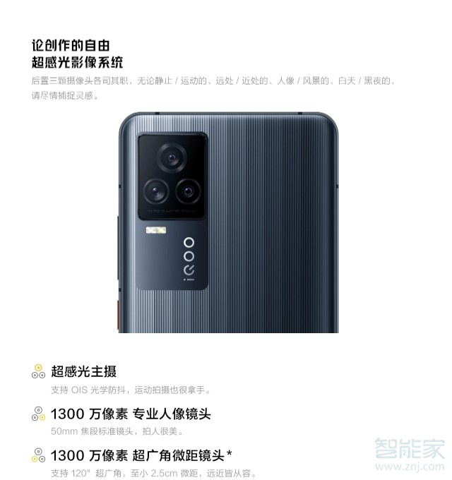 iqoo7前置配备了1600万像素摄像头,后置三摄4800万像素主摄+1300万像素长焦+1300万像素微距。