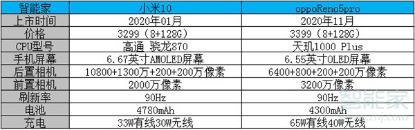 以上就是智能家小编给大家带来的关于“oppoReno5pro和小米10对比”的全部内容了,了解更多智能资讯尽在智能家(m.znj.com)!