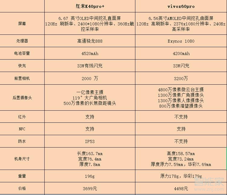 以上就是智能家小编给大家带来的关于“红米k40pro+和vivox60pro区别”的全部内容了,了解更多智能资讯尽在智能家(m.znj.com)!