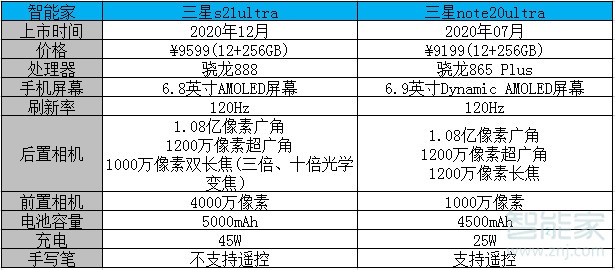以上就是智能家小编给大家带来的关于“三星s21ultra和三星note20ultra比较”的全部内容了,了解更多智能资讯尽在智能家(m.znj.com)!