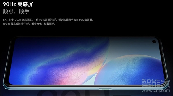OPPOReno5K:搭载了一块6.43英寸的OLED盲孔屏,支持90Hz的刷新率。