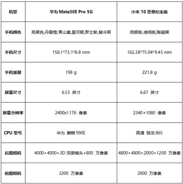 以上就是智能家小编给大家带来的“华为mate30epro和小米10至尊纪念版对比”的全部内容,了解更多智能资讯尽在智能家!(m.znj.com)
