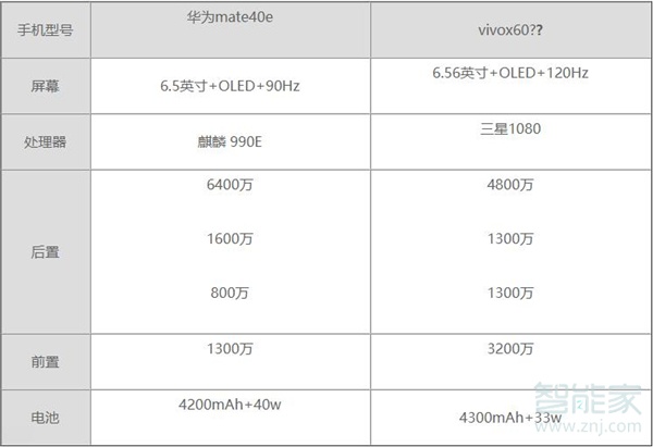 以上就是智能家小编给大家带来的“华为mate40e和vivox60对比”的全部内容,了解更多智能资讯尽在智能家!(m.znj.com)