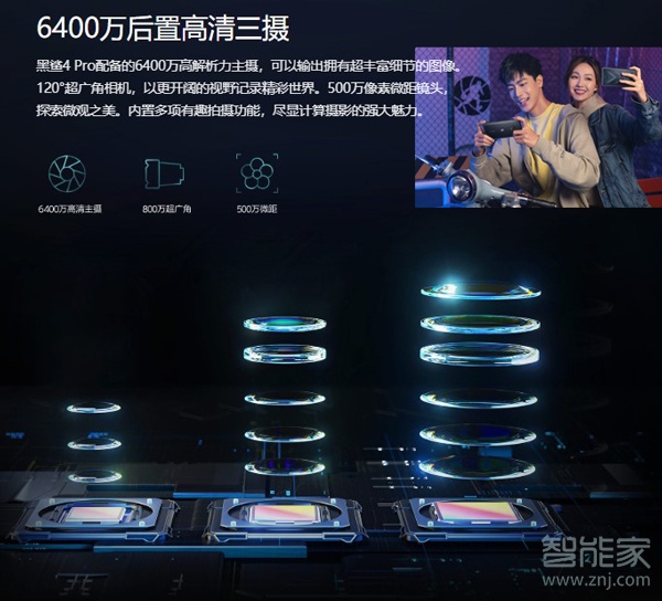 黑鲨4Pro后置6400+800+500 万像素,前置2000 万像素,支持4K视频拍摄,HDR10+视频拍摄。