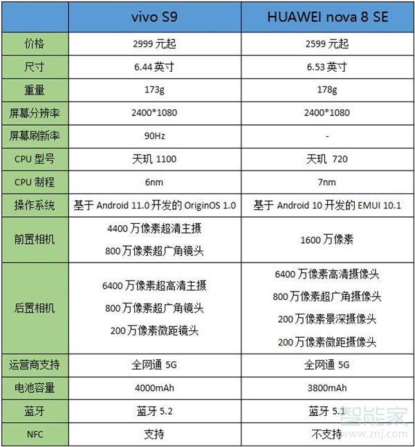 以上就是智能家小编给大家带来的关于“vivos9对比华为Nova8se”的全部内容了,了解更多智能资讯尽在智能家(m.znj.com)!