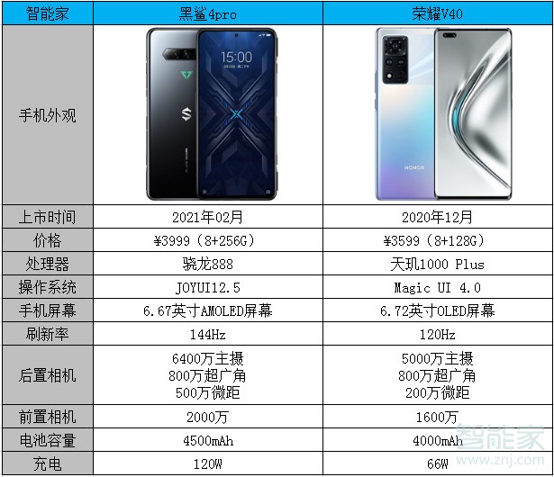 以上就是智能家小编给大家带来的关于“黑鲨4pro对比荣耀V40”的全部内容了,了解更多智能资讯尽在智能家(m.znj.com)!