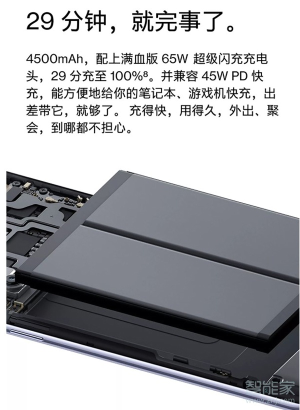 一加9内置4500mAh大电池,支持65W超级闪充。
