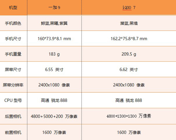 一加9发布了,各方面的配置都还不错,那么和价格不相上下的iqoo7对比,两者之间有哪些差别呢?