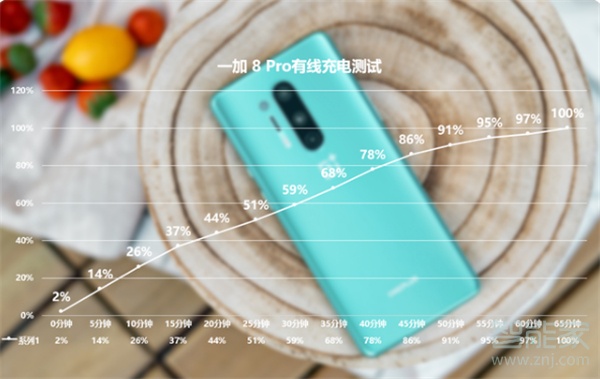 一加 8 Pro内置4510mAh容量电池,支持Warp 30T 有线闪充以及Warp 30W无线闪充。2在实际测试中,一加 8 Pro 在剩余2%电量时开始充电,30分钟后电量为59%,完全充满仅需65分钟。