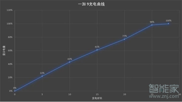 一加 9内置4500mAh电池,这样的电池容量足以满足用户一天的日常使用,有线充电功率提升到65W,大大提升了充电效率,缩减充电等待时间。经实测,一加 9仅充电10分钟便能充满43%的电量,20分钟便能充满77%,不到半小时就能充满。