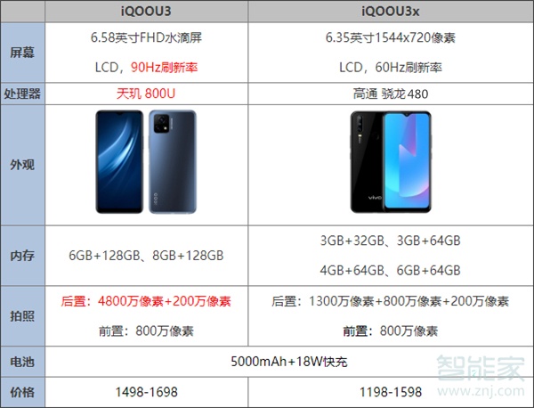 以上就是智能家小编给大家带来的关于“iQOOU3和iQOOU3x区别”的全部内容了,了解更多智能资讯尽在智能家(m.znj.com)!
