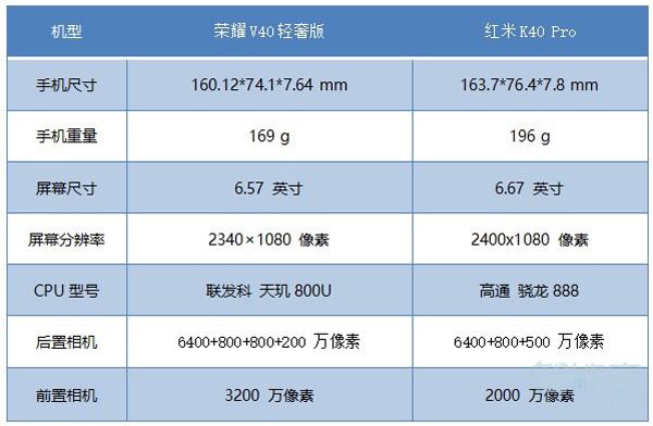 荣耀v40轻奢版成为荣耀最新的畅销机型,那么和价格相差不大的红米K40pro相比,有哪些区别呢?