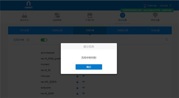 打开“无线中继”按钮