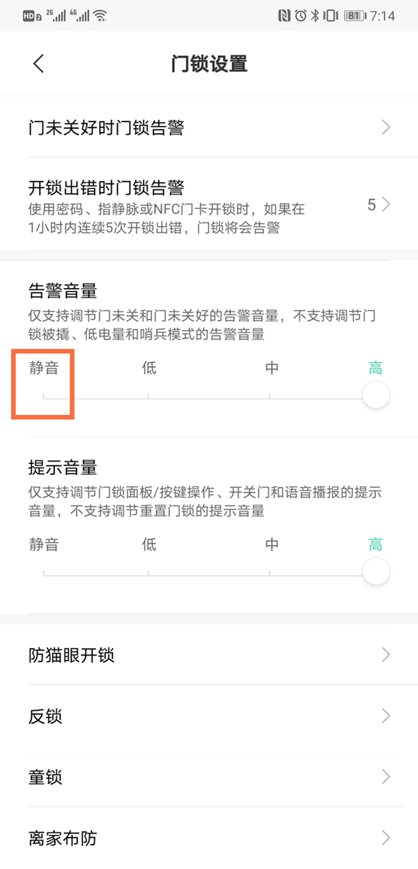 3、将告警音量调至静音即可。