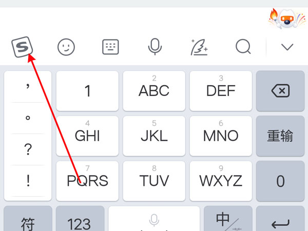 1、点击搜狗键盘左上角的搜狗符号进入更多功能。