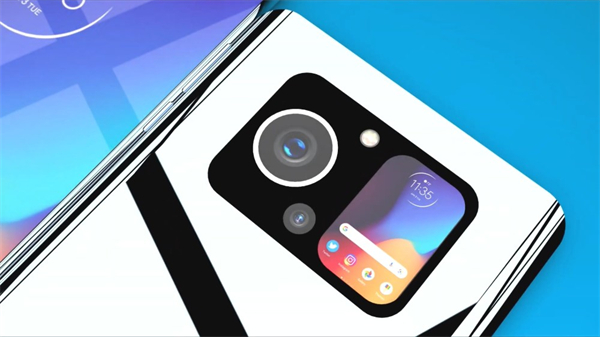 先从其背面来看,该款Motorola G70概念机采用了圆角矩形+大眼三摄+副屏智窗的设计。这样的设计真的非常具有辨识度,是市场是非常罕见的设计方案,很让人感觉到新颖。