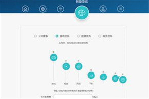 “智能带宽”,设置,在这里,可以选择一种上网模式,来合理分配网速,也可以自己定义下行总带宽。