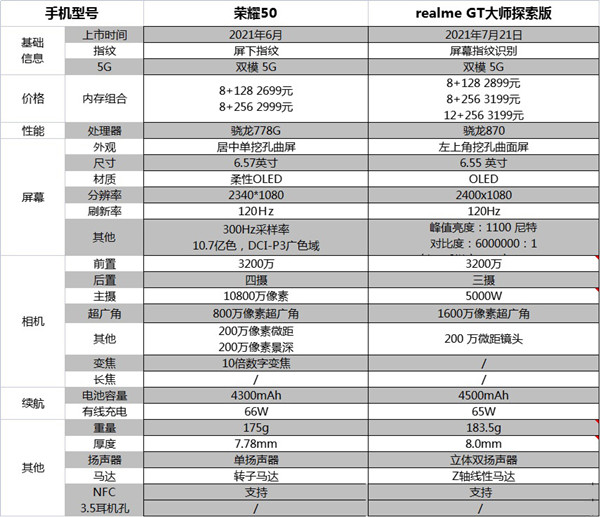 以上就是智能家小编给大家带来的关于“荣耀50和realme gt大师探索版区别”的全部内容了,了解更多智能资讯尽在智能家(m.znj.com)!