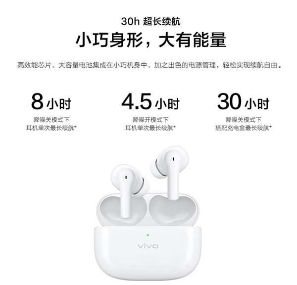 vivoTWS 2单耳续航8小时(关闭降噪、开启后是4.5小时),配合充电盒来到30小时;而2e单耳是7.6小时,总续航是27小时。