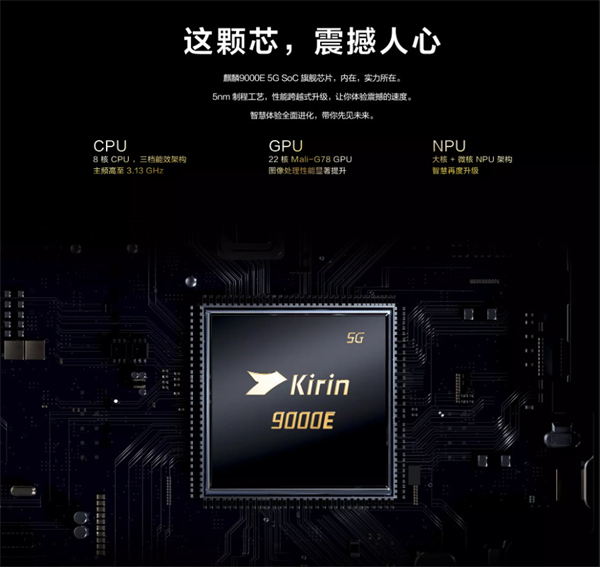 华为mate40采用麒麟9000e处理器,麒麟9000E是22核Mali-G78。7nm制程工艺,CPU大核可能从A77升级为A78架构,GPU从G76升级为G77架构,5G基带和NPU也进行了优化,也支持立体双扬声器,支持IP53级防尘防水和Z轴线性马达。电池容量为4200毫安,支持40W有线充电,同时也支持40W无线。