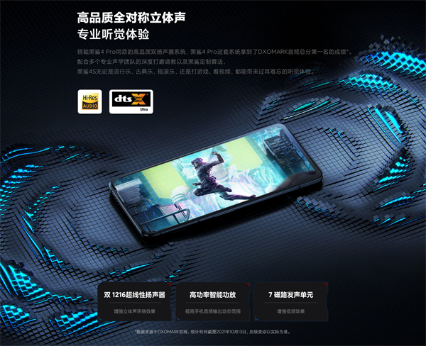 黑鲨游戏手机4S搭载双 1216 超线性扬声器,使用正面上、下完全对称扬声器设计,双 Smart PA 驱动双扬声器真正做到上下输出一致的平衡立体声效果,较黑鲨4扬声器效果更好。
