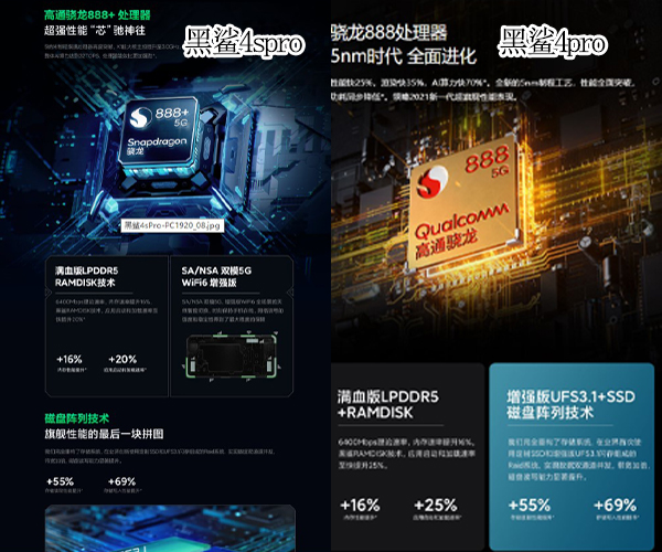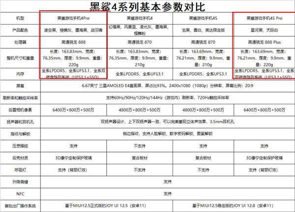 对比总结:作为游戏手机黑鲨4Spro在肩键与处理器性能上进行了升级,在加上亮眼的配色,确实让人非常想入手。