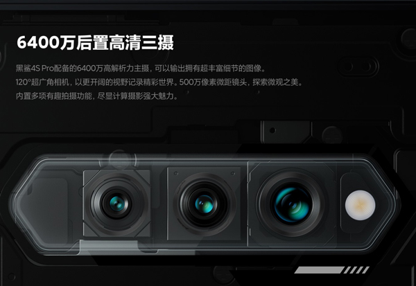黑鲨4Spro和黑鲨4pro都是后置6400万主摄,和800万像素的120°超广角镜头和一颗500万像素的微距镜头,拍照能力作为游戏手机中规中矩。