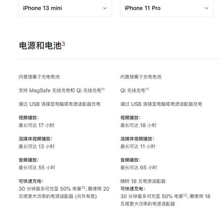 苹果13mini:搭载A15仿生芯片,支持MagSafe无线充电和Qi无线充电,视频播放最长可达17小时,流媒体视频播放最长可达13小时,音频播放最长可达55小时,支持单卡。
